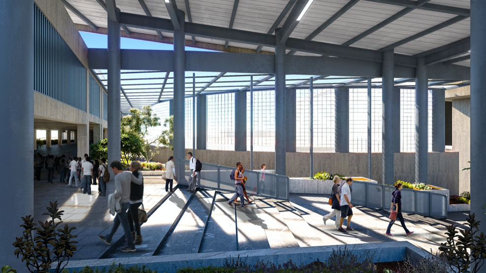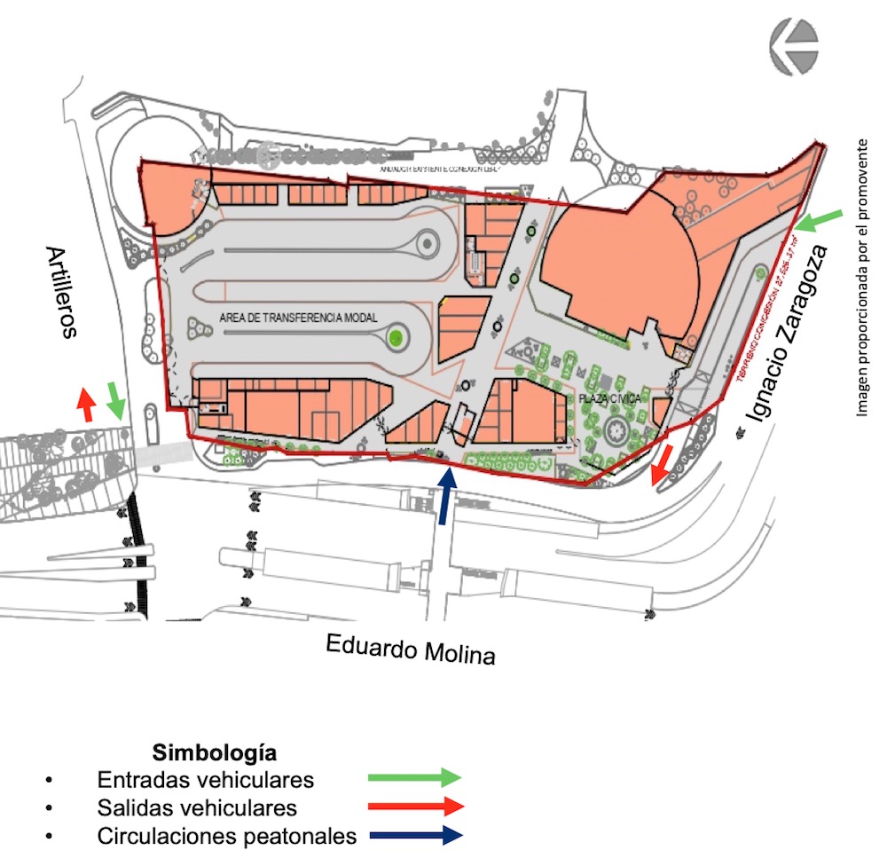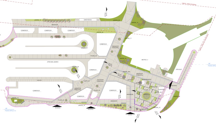 La propuesta arquitectónica plantea un Área de Integración con el Entorno que impulse el mejoramiento integral del espacio público, promoviendo mejoras sustantivas en materia de sustentabilidad, iluminación, seguridad en la vía pública y en el entorno urbano. Tambien se rehabilitarán los andadores peatonales que permiten la interconexión con los diferentes servicios de transporte.